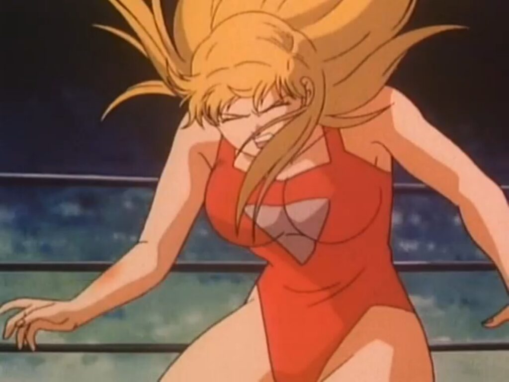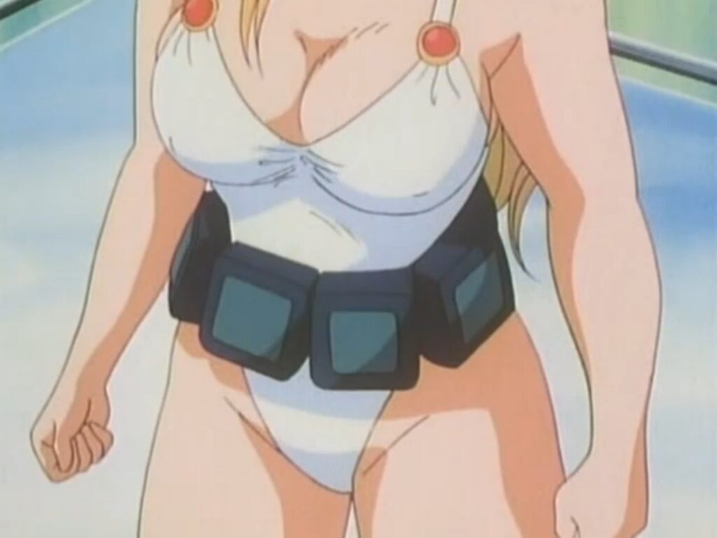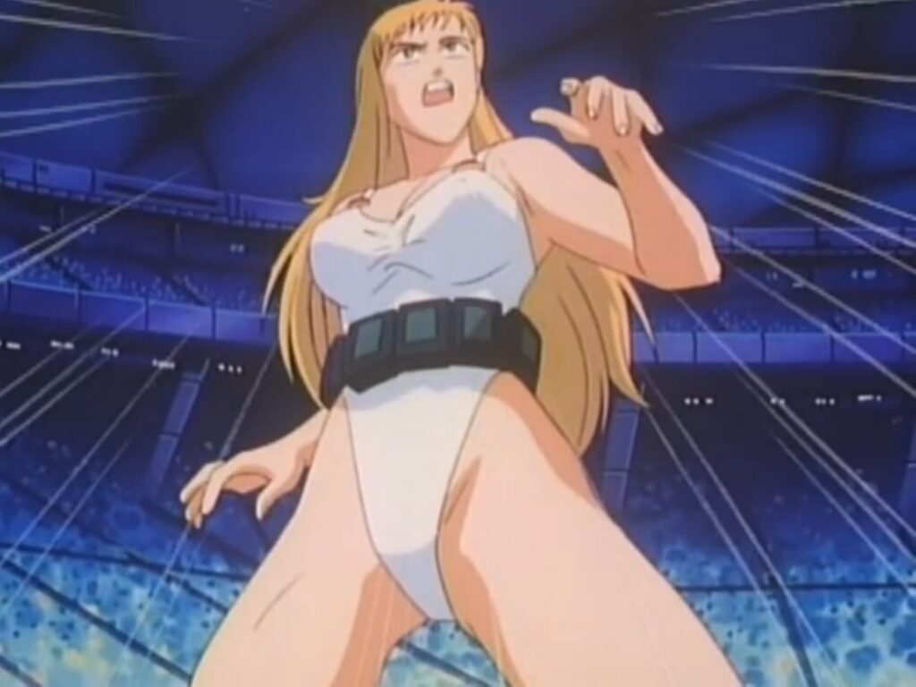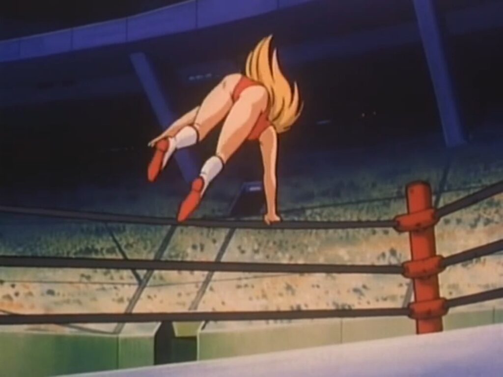 ターちゃんをアメリカにつれてきたリサが彼等を元気づけるために招待した試合では、リサの白ワンピースハイレグ水着コスチュームが拝めます。