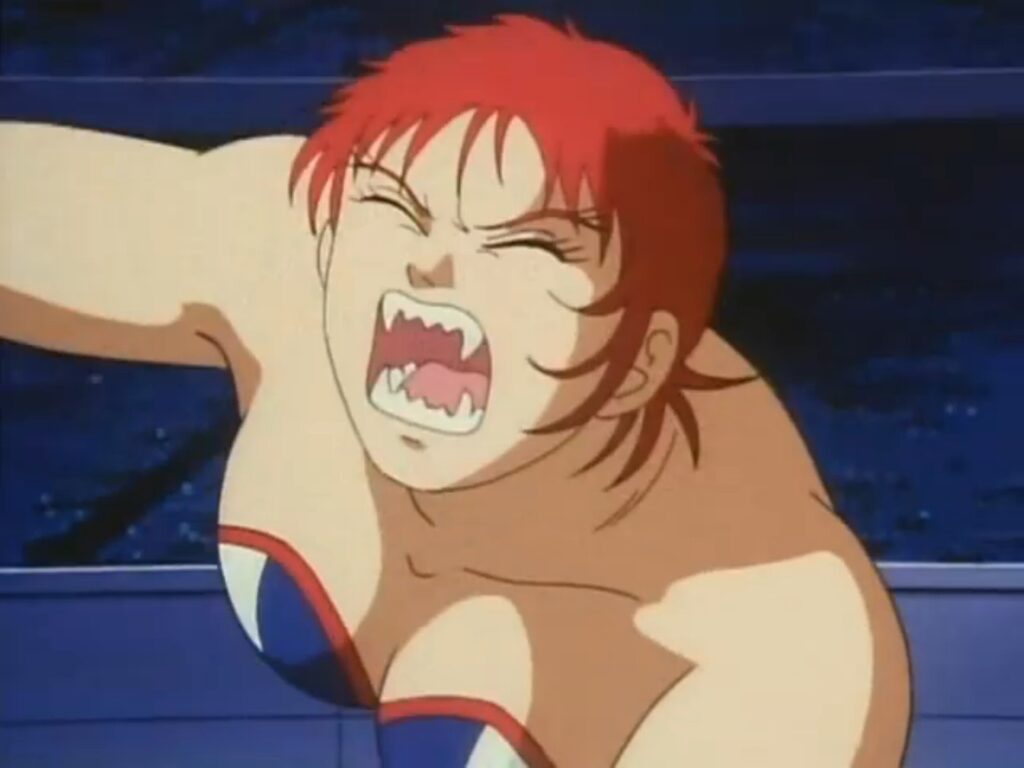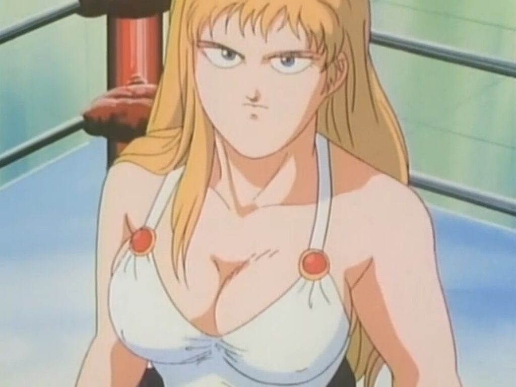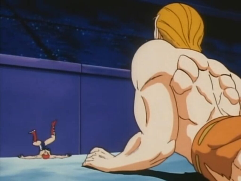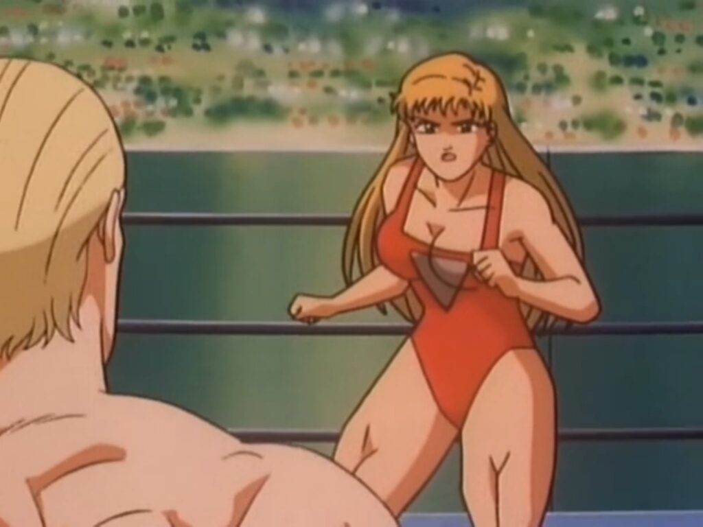 ターちゃんをアメリカにつれてきたリサが彼等を元気づけるために招待した試合では、リサの白ワンピースハイレグ水着コスチュームが拝めます。