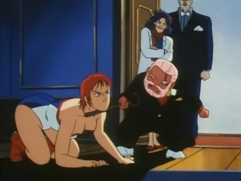 ターちゃんに敗北したロザリンは、ベイツ達から折檻を受ける。ベイツの『息子』であるアイアンマスクがロザリンを痛めつけるシーンは、アニメ版だとあまり克明に描写しないように配慮されているっぽい感じです。