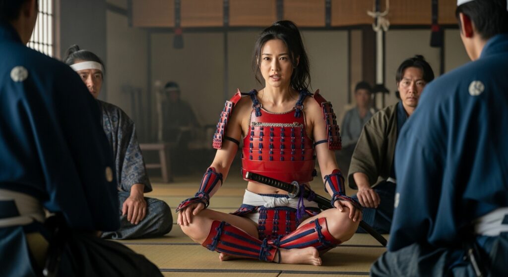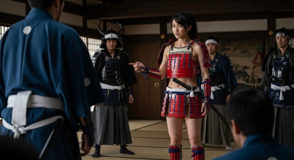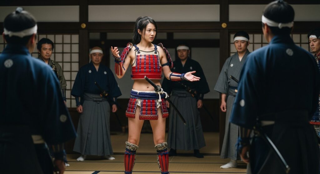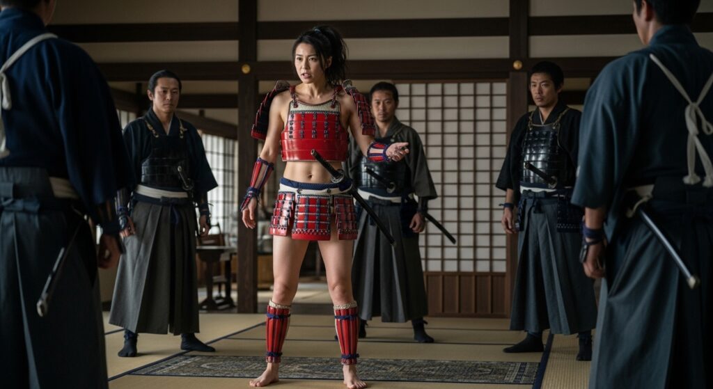 いやぁ、和風ビキニアーマーのエロさは尋常じゃありませんね(笑) 周囲の男武士たちが普通の甲冑姿の中、一人だけこんな格好した女がいたら……。フィクションだからこそ可能な激エロシチュエーションです。