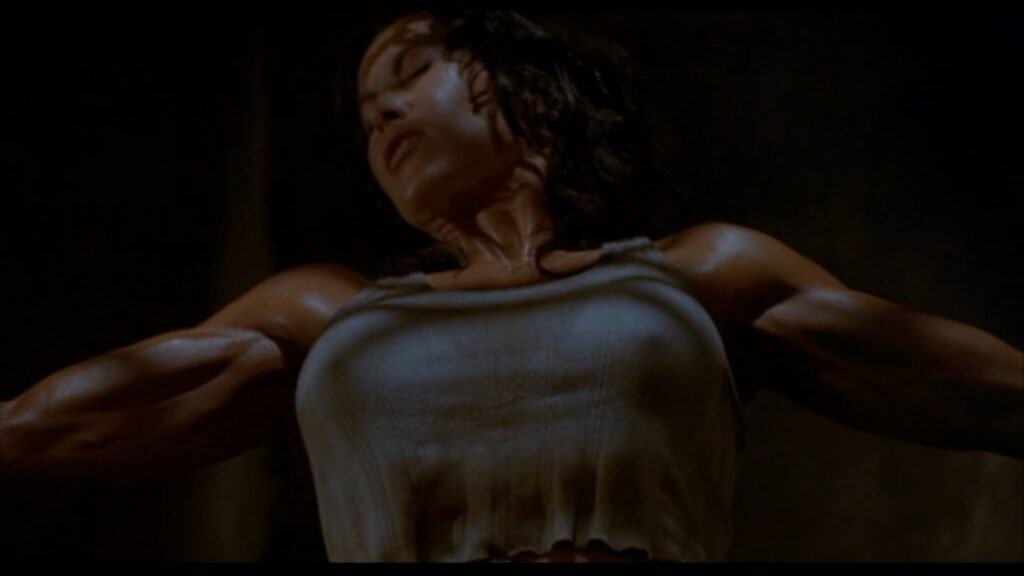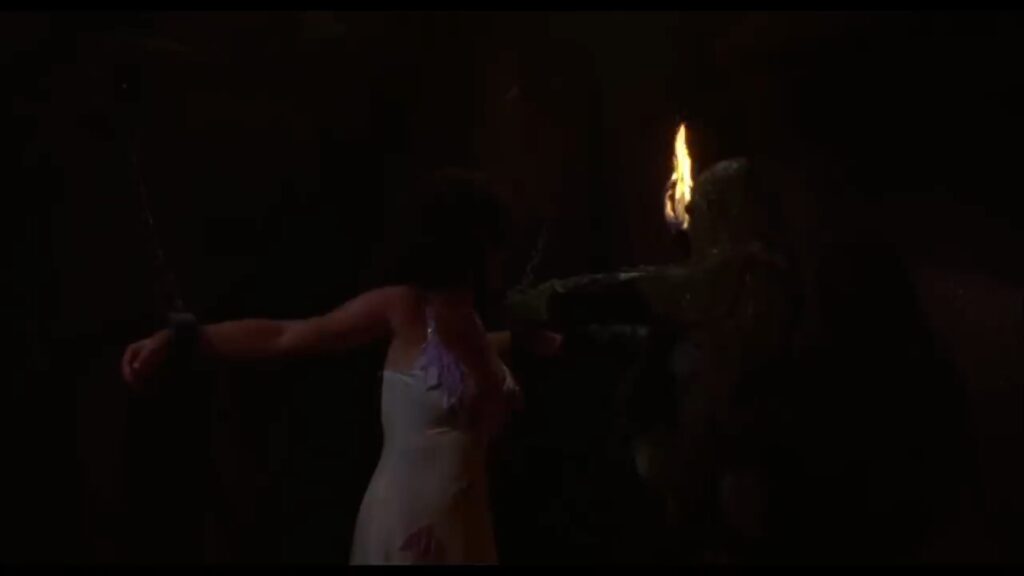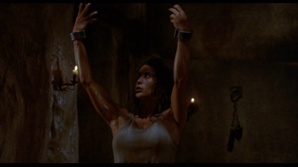 『怪人スワンプシング/影のヒーロー』よりヒロイン、アリスの壁拘束