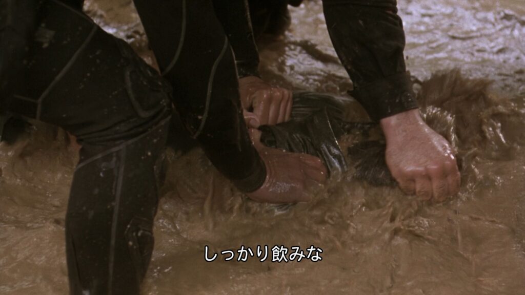 遅れてやってきた敵兵士たちと乱闘になり捕まったリュックは、押さえつけられて溺死させられそうになる。この時結局拘束を解かれずに一人だけ縛られたままのマギーが、もどかしそうにもがいている様子が超エロいです。ダムゼル・イン・ディストレス的にも良質なシーンで、これは是非静止画ではなく動画で観て欲しいところですね(ただオチが残念ですが)。