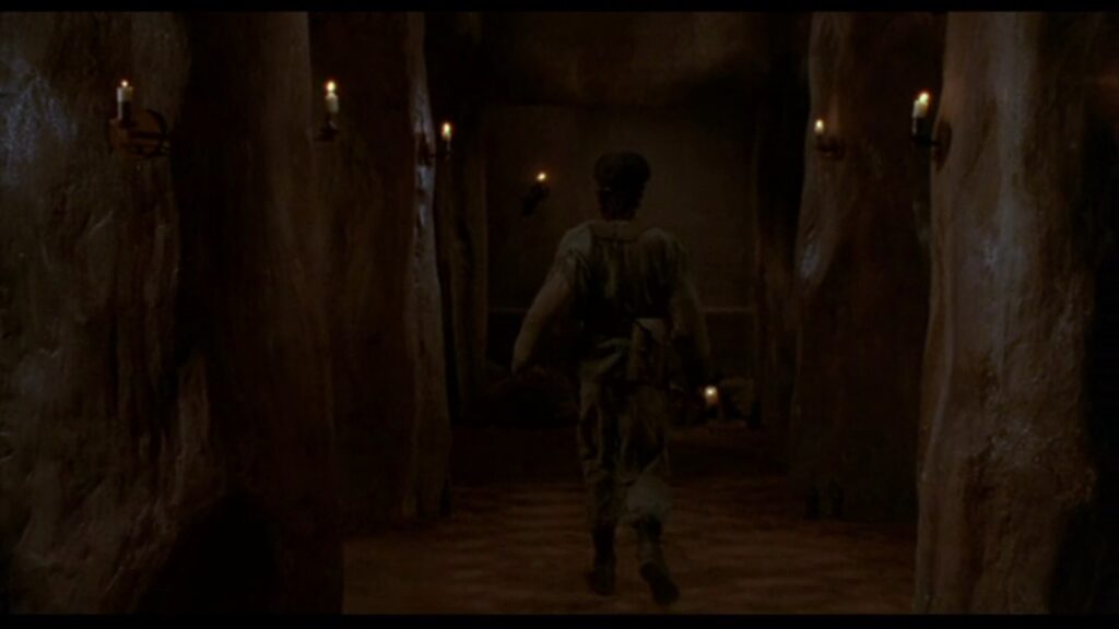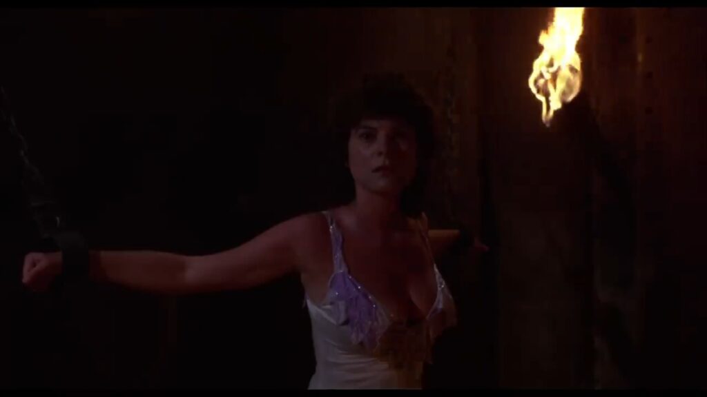 はるか昔に日本語版を観た記憶はあるんですが、当然細かい内容は全く覚えていないので、何故彼女だけここに囚われているのか不明ですが、恐らく人質かなにかだと思われます。